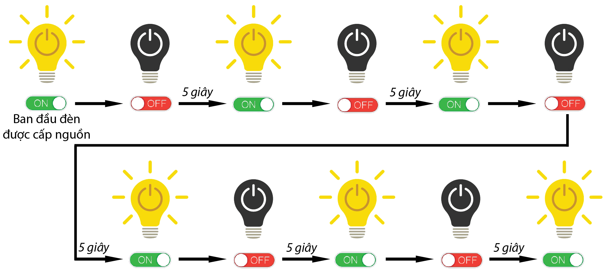 Sau khi thực hiện thao tác trên đèn sẽ nháy nhanh 2 lần.