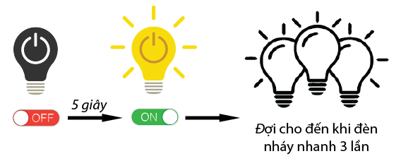 Bước 2: Lại tiến hành thao tác Tắt → Bật nguồn đèn một lần nữa. Sau khi có nguồn lại, đợi cho đến khi thấy đèn nháy nhanh 3 lần, sau đó chuyển sang bước 3.