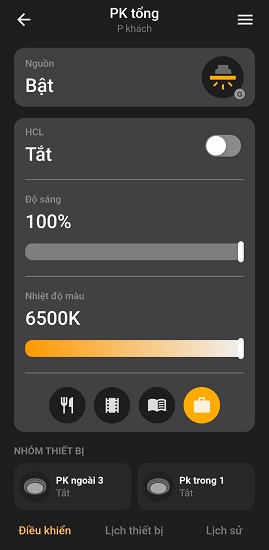 Điều khiển theo nhóm Lighting, HCL, cảnh Lighting, Rule, Lịch.
